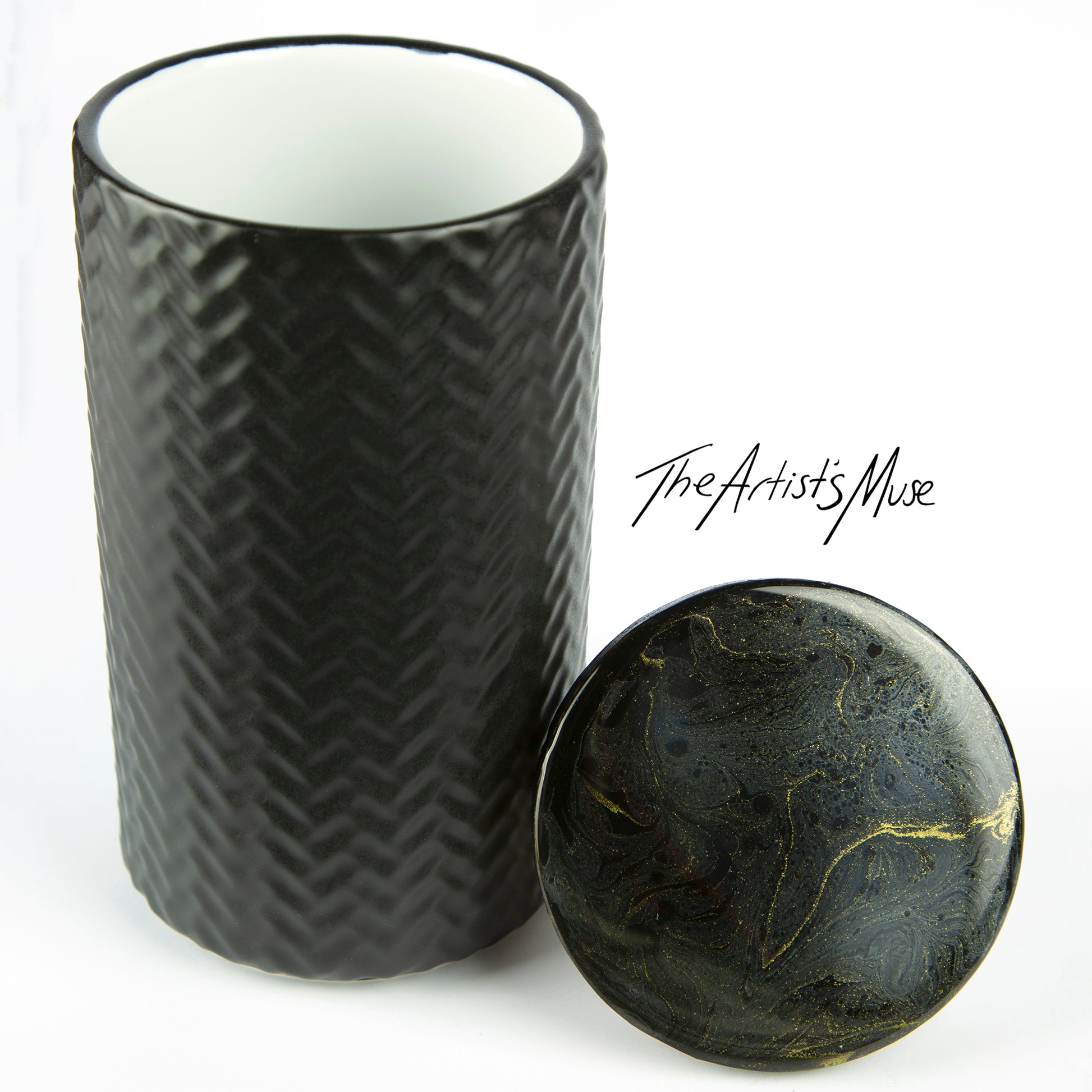 Tall Jar- Black Jar with Black/Charcoal/Gold lid