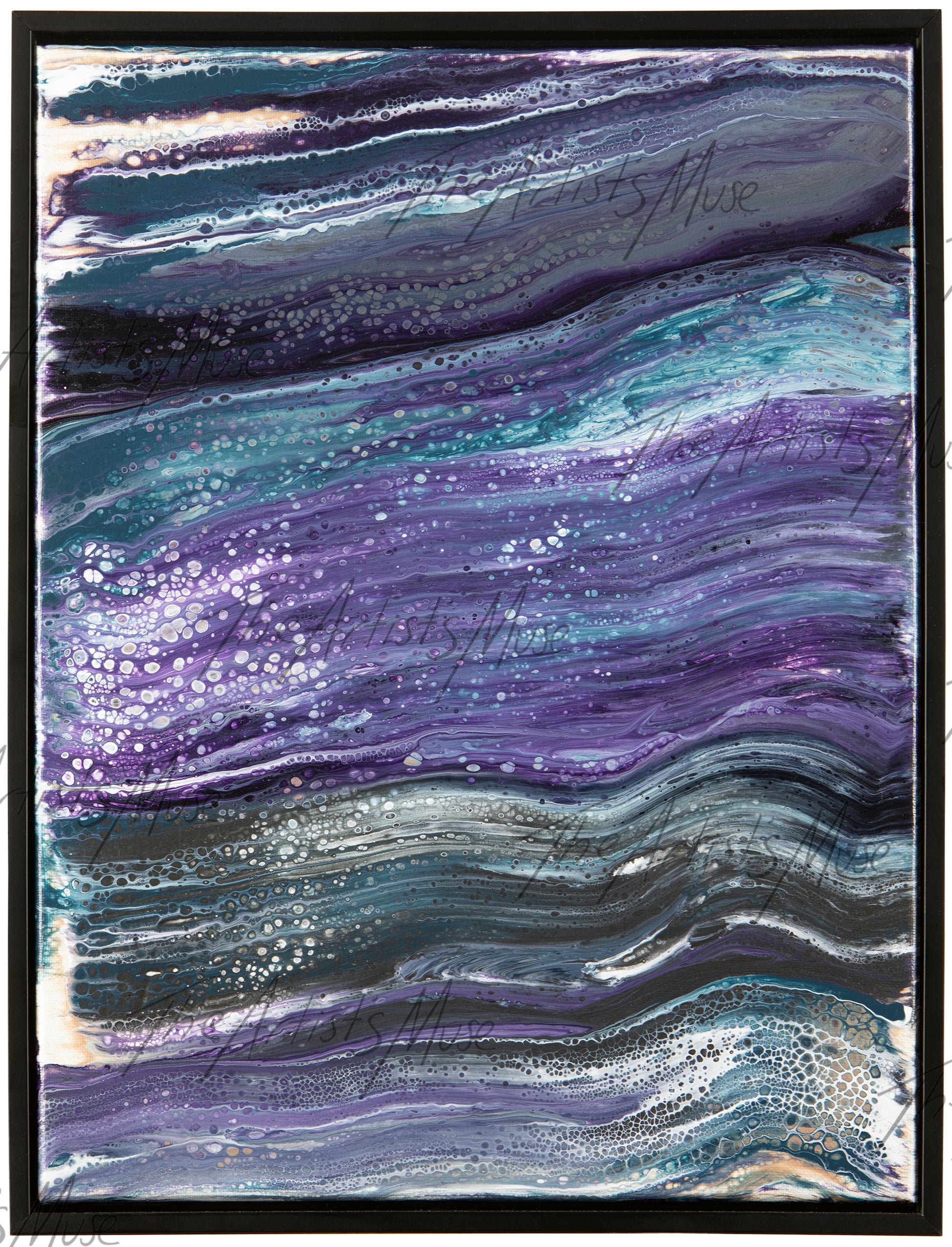 This art piece is a thin edge canvas set into a black satin finish floating frame.