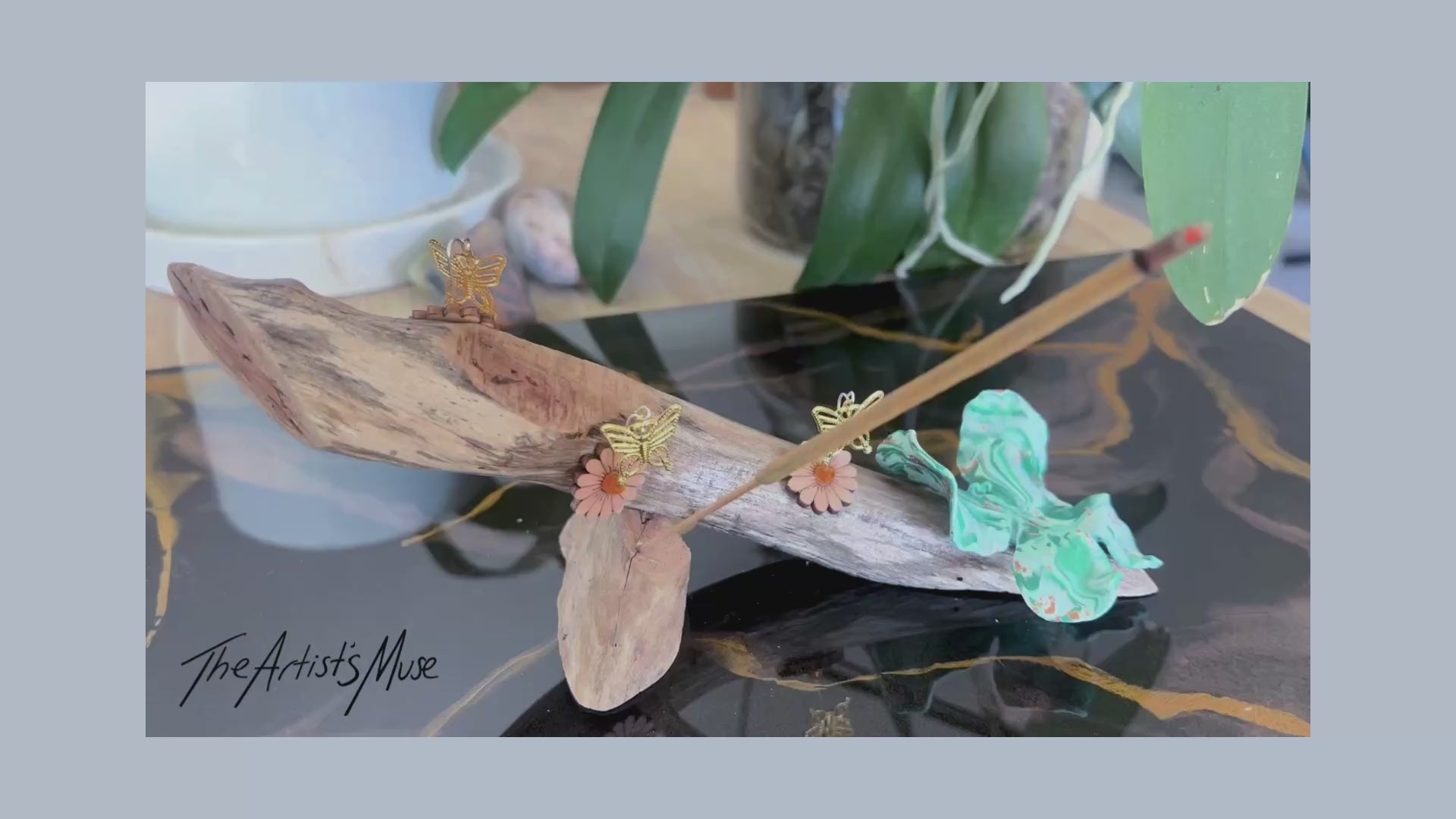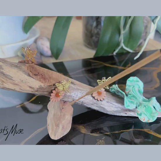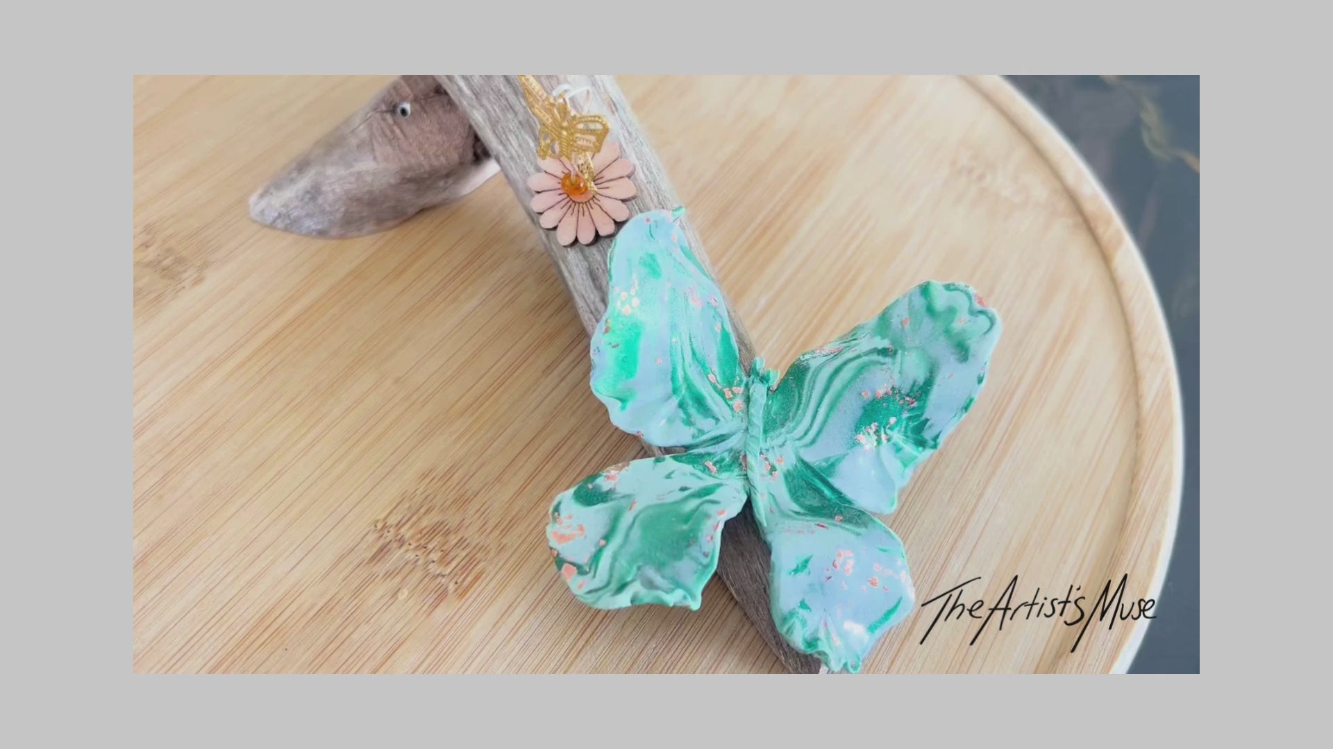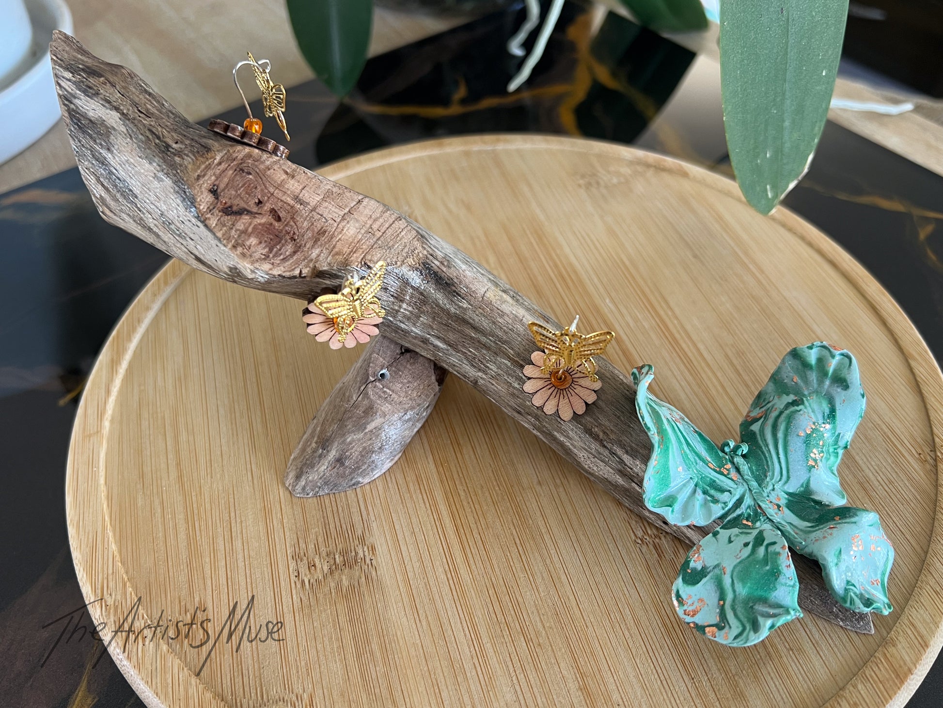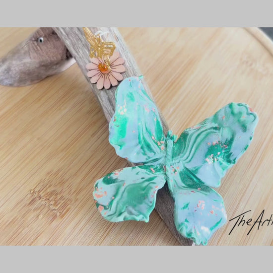 Hand made with timber and metal charm details. Handmade marble polymer clay butterfly. I would consider this piece as delicate and needs to be handled with care.