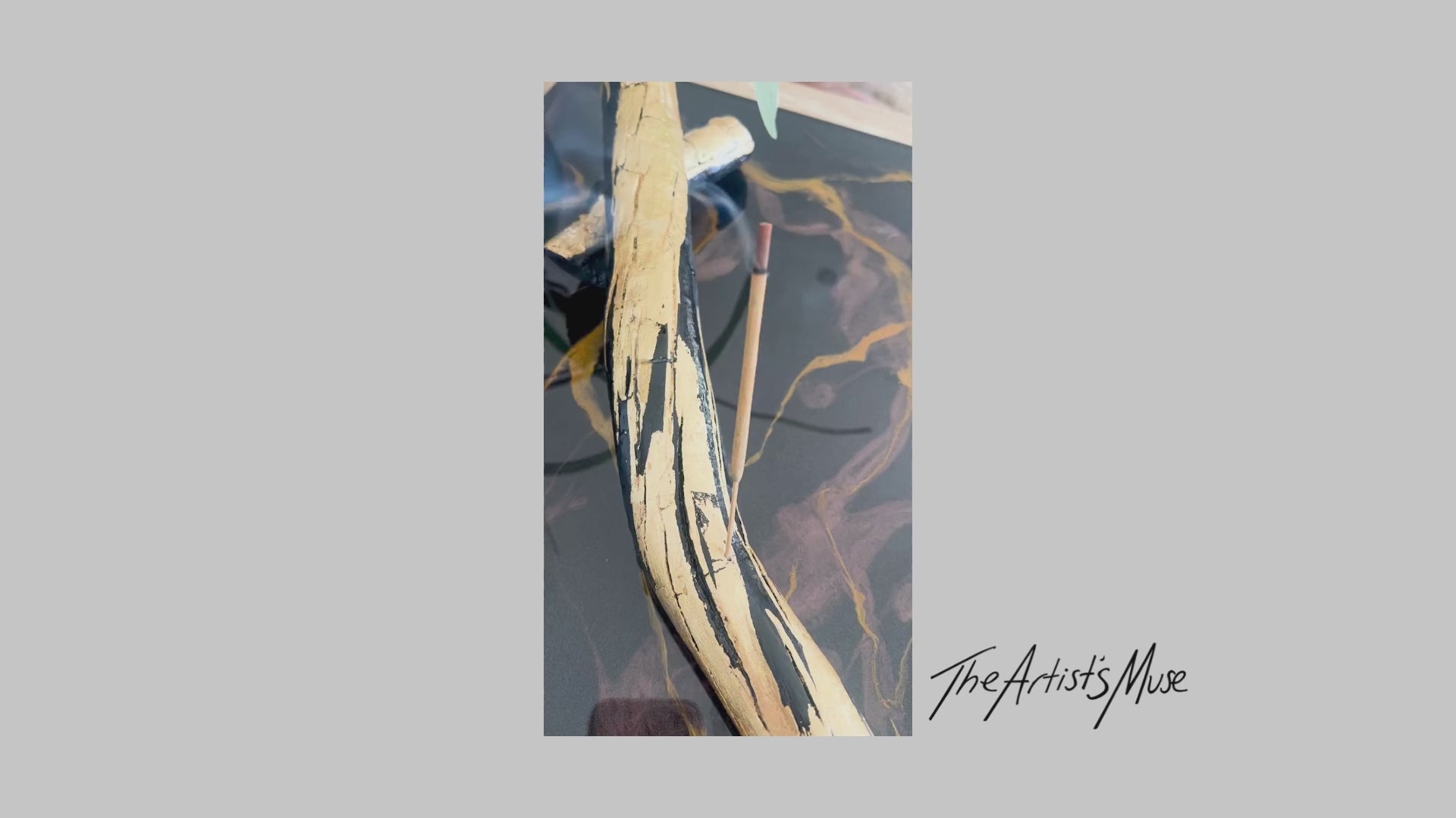 Black timber Incense Holder with gold foil