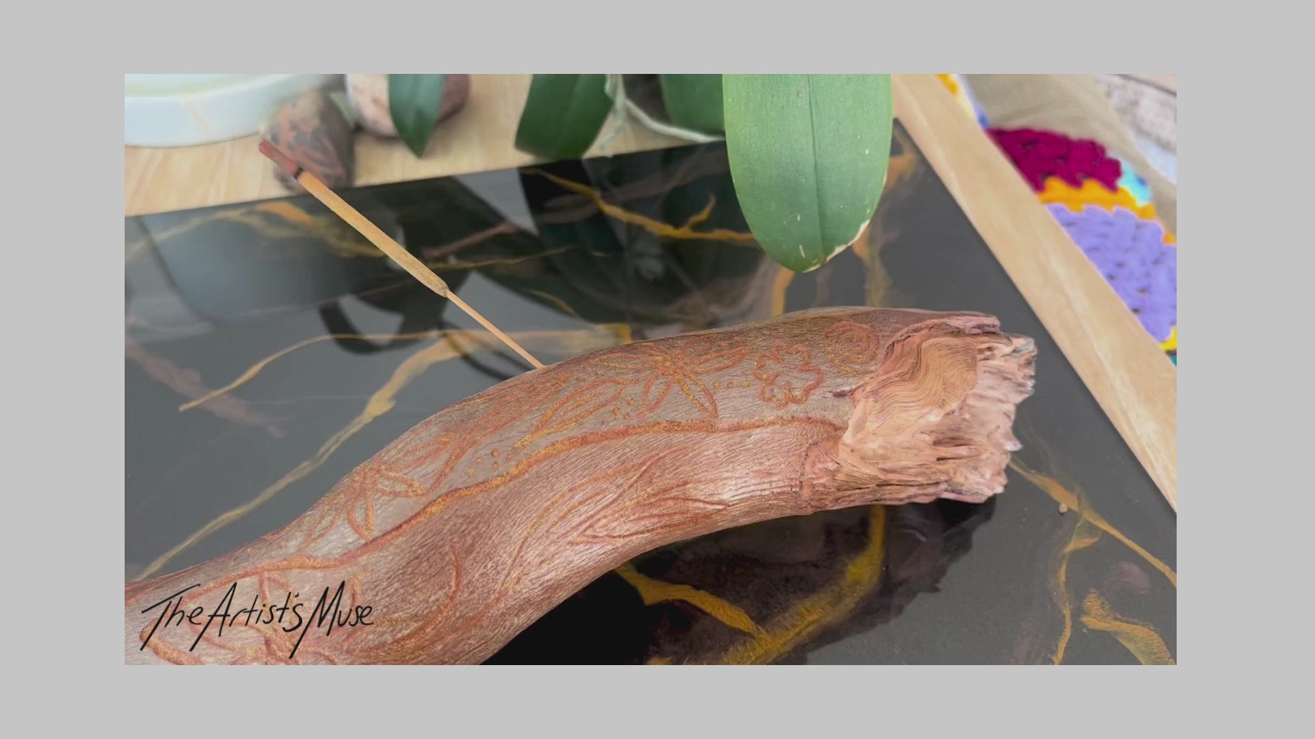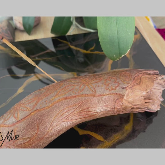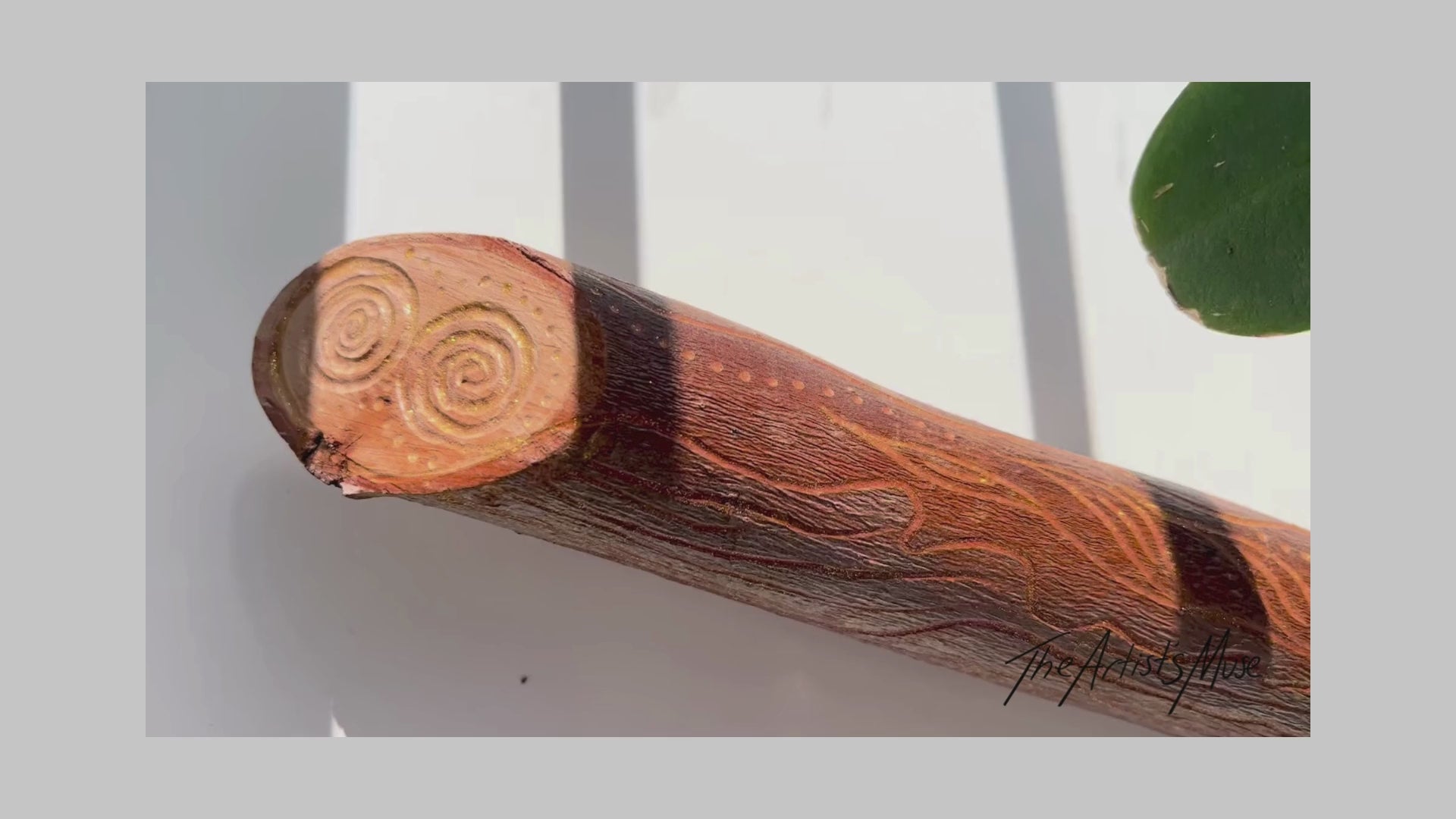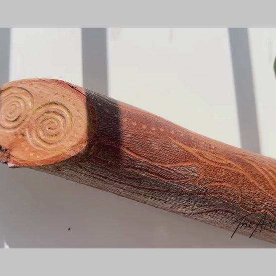 This is a stunning piece of natural timber hand engraved to flow with the natural energy and textures. finished with shimmery gold glitter that captures the sunlight.