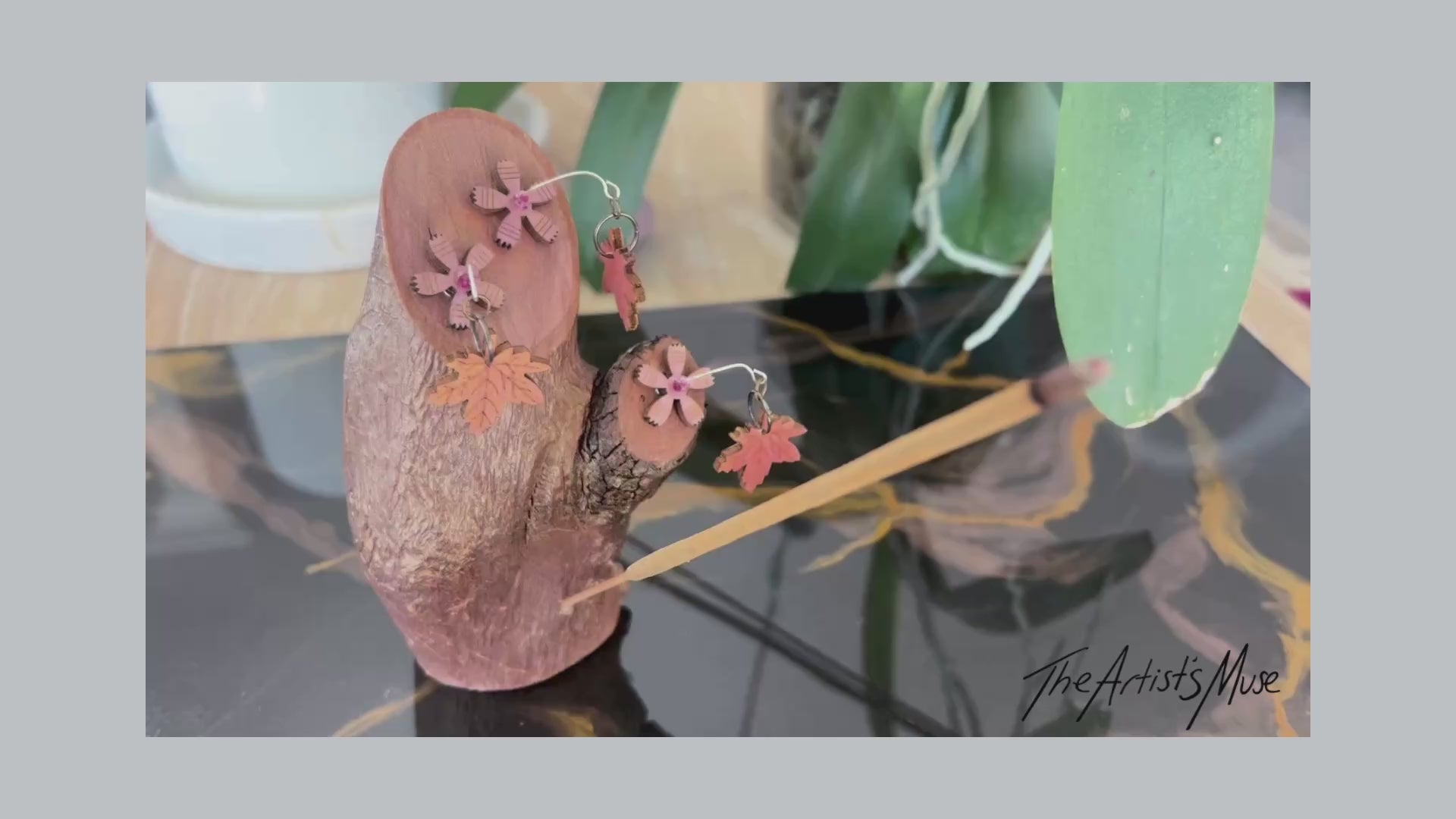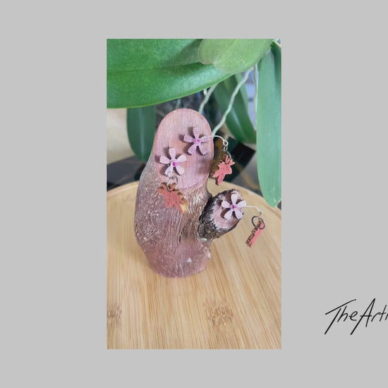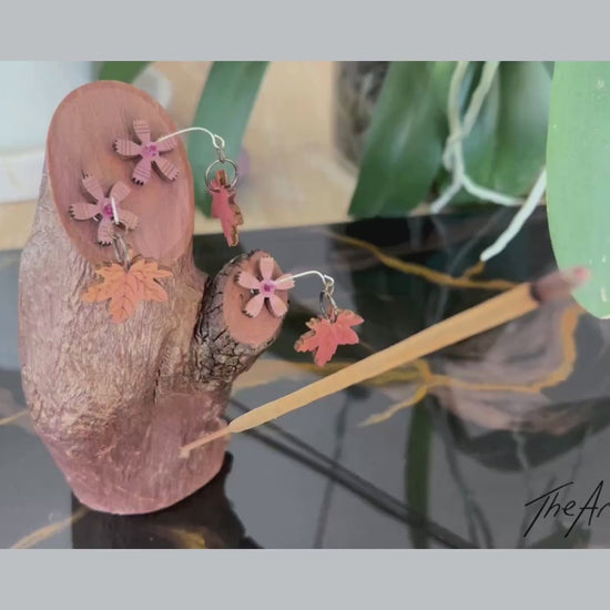 Timber Incense Holder with timber flower and leaf design