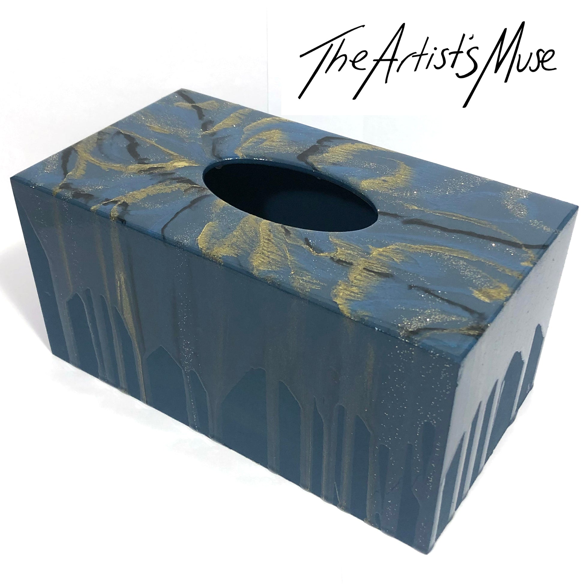 Full size gorgeous resin covered tissue box cover to add some art to an ordinary item in the home.