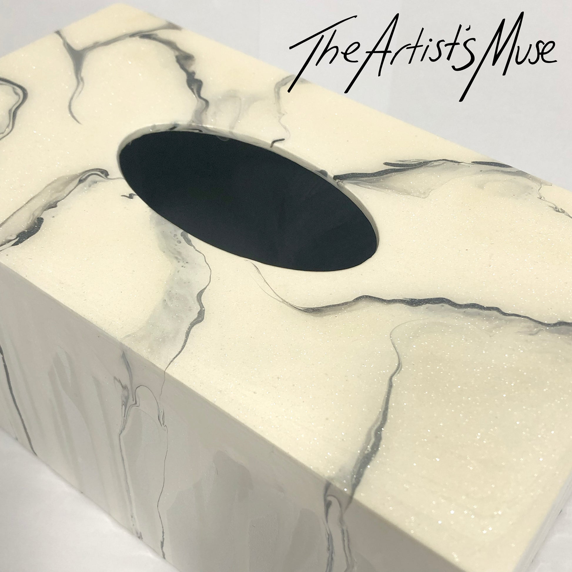 Tissue Box Cover- Warm white pearl with black marble- SOLD